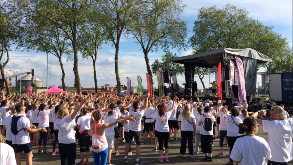 Un podium, de la musique et un DJ (Téo Fox), des couleurs (jets de peinture) et des coureurs. Car la Holi Run c'est avant tout une course à allure libre et non-chronométrée, sur 5 et 10 kilomètres. Le circuit est à réaliser 2 fois ou 1 fois en fonction du parcours avec passage obligé tous les kilomètres dans les zones de couleur mais aussi devant le podum installé devant le Hangar 23.