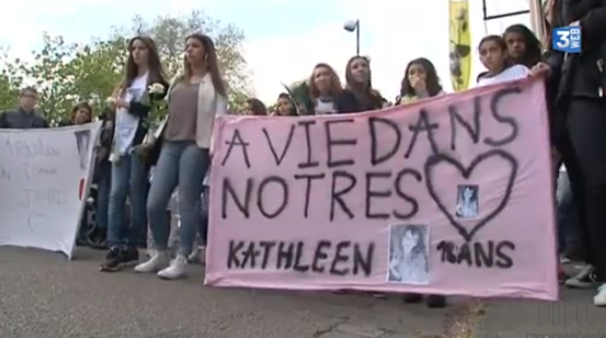 Une soixantaine de camarades et les proches de Kathleen ont participé samedi à une marche blanche à la mémoire de la jeune fille (Capture d'écran France 3 Haute-Normandie)
