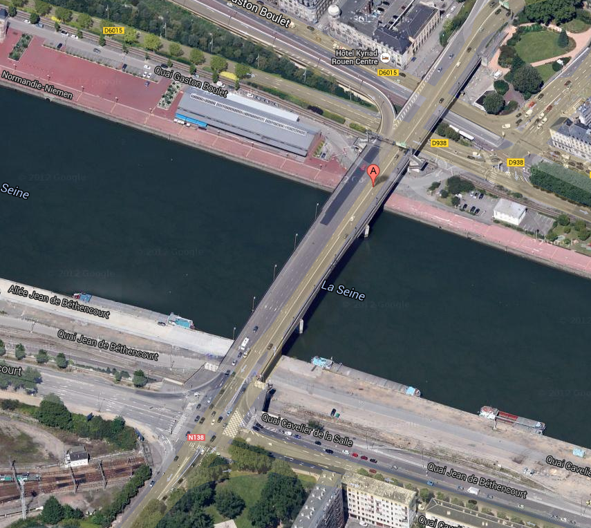 Il sera difficile de circuler la nuit aux abords du pont Guillaume Le Conquérant entre lundi 3 et vendredi 7 novembre. Qu'on se le dise (@Google Maps)