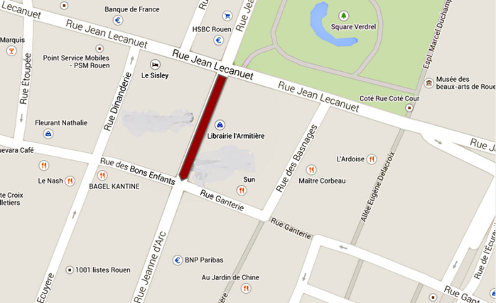 > La rue Jeanne d'Arc est fermée partiellement entre la rue des Bons enfants et la rue Jean Lecanuet