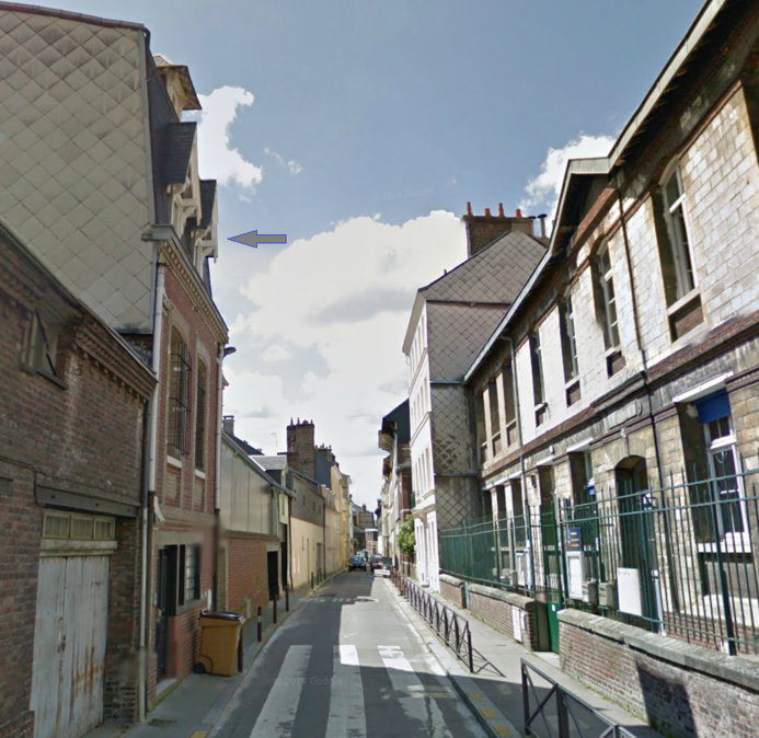 Le logement situé sous les combles (flèche) de ce petit immeuble en briques rouges de la rue Saint-André était complètement embrasé à l'arrivée des secours (Photo d'illustration)