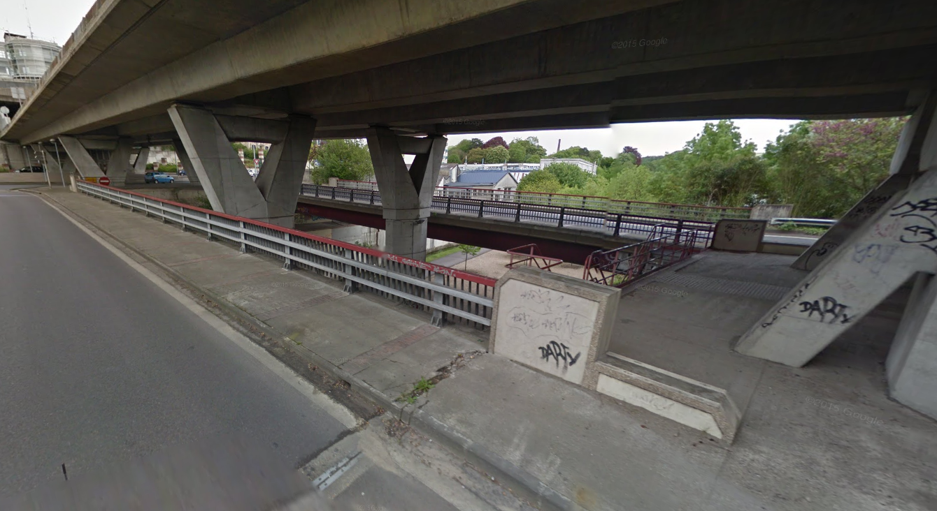 Le SDF vivait dans un abri de fortune aménagé et dissimulé derrière la pile d'un pont de la rocade nord-est de Rouen, rue des Petites Eaux du Robec