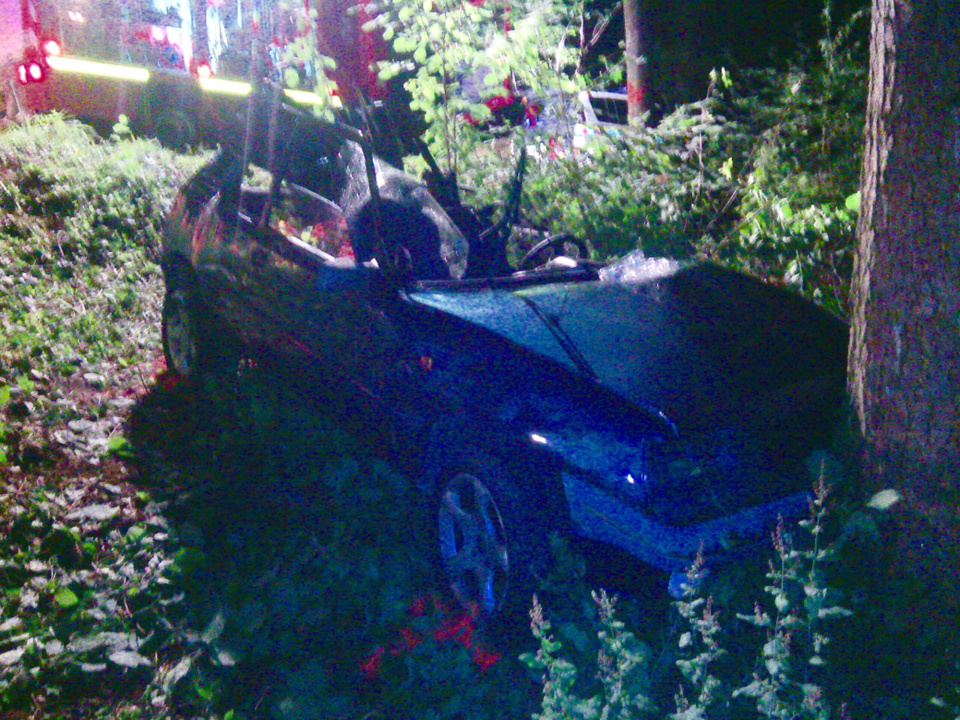 Selon les constatations, la 205 à traversé la chaussée et a percuté violemment un arbre sur la gauche. La voiture a continué sa route et a terminé sa course contre un deuxième arbre situé en contrebas. Le choc frontal a été d'une extrême violence.