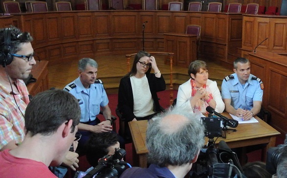 Dominique Laurens, procureure de la République, entourée du colonel Dubuis, patron du groupement de gendarmerie de l'Eure et de Louise Miel, substitute du procureur, a donné quelques informations sur les circonstances du drame au cours d'un point presse ce jeudi après-midi au palais de justice d'Evreux Photo @infonormandie