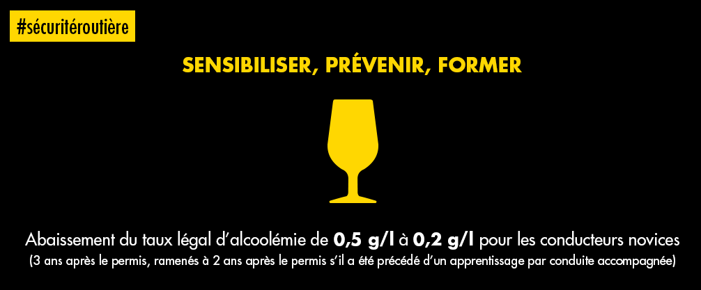 Parmi les mesures phares annoncées ce lundi après-midi par le ministre de l'Intérieur, l'abaissement de 0,5 g à 0,2 g/l du taux d'alcoolémie pour les conducteurs novices. Cette mesure s'applique aux conducteurs qui ont moins de trois ans de permis (deux ans pour ceux qui ont eu recours à la conduite accompagnée).