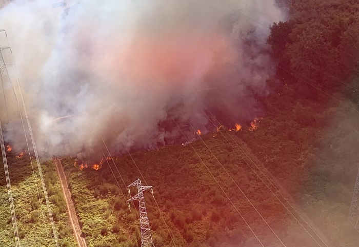 ㅤ#Incendie d'environ 1 hectare sous une ligne à haute tension avec risques de propagation aux bois attenants.