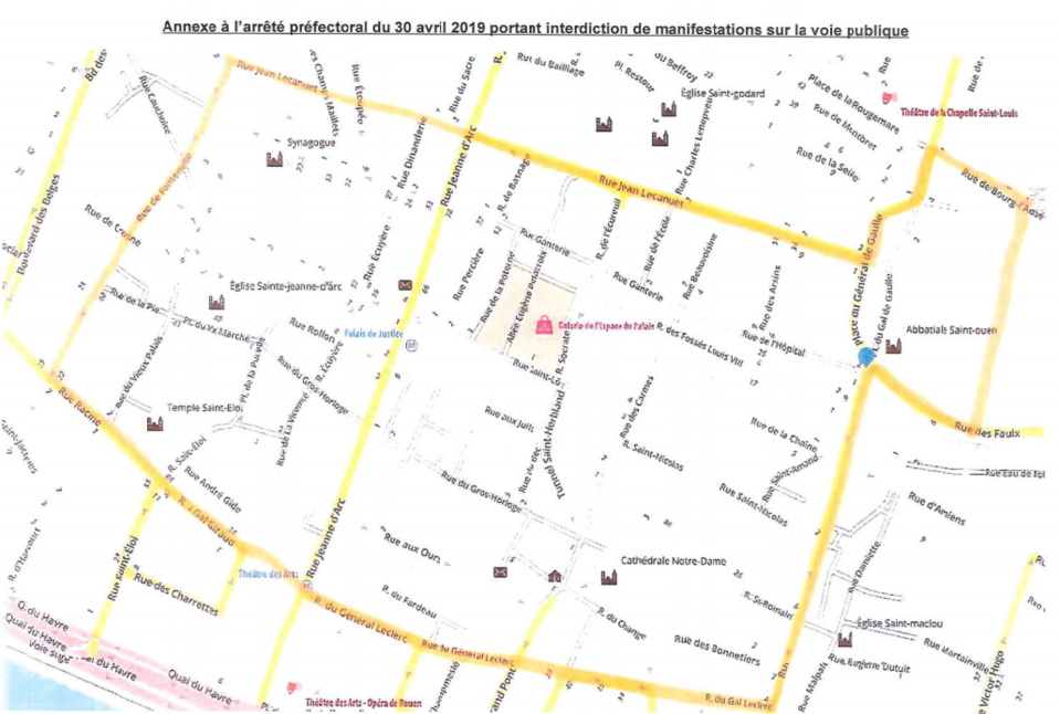 Manifestation interdite dans le périmètre du centre-ville historique et commerçant de Rouen, de 10h à 22h