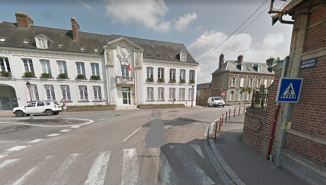 Le piéton a été percuté par le poids lourd à hauteur de ce carrefour, face à la mairie de Gournay-en-Bray (Illustration © Google Maps)