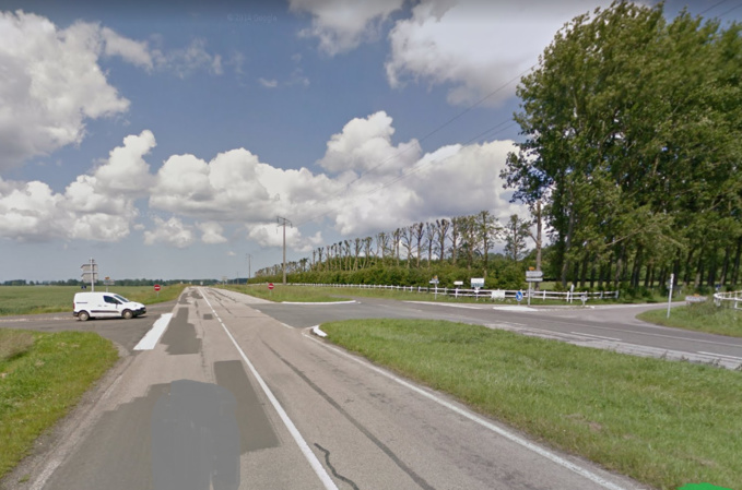 Le camion-plateau a été découvert dans un champ à proximité de cette intersection à deux kilomètres du centre-bourg de Beauval-en-Caux. Son conducteur était blessé grièvement à la tête - Illustration © Google Maps