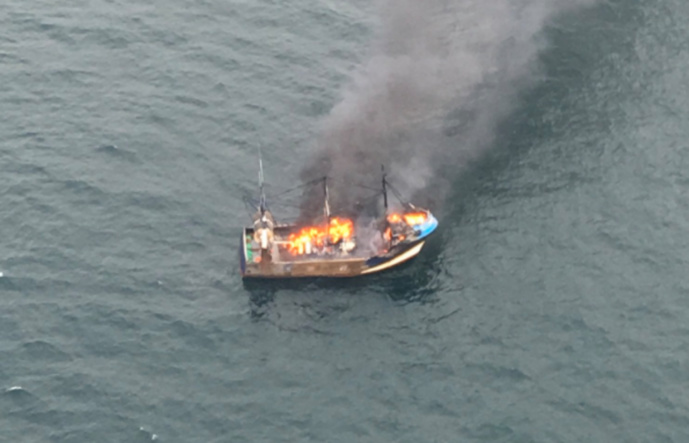 Le chalutier a pris feu au large de Dieppe (Photos @ Préfecture Maritime de la Manche et mer du Nord)
