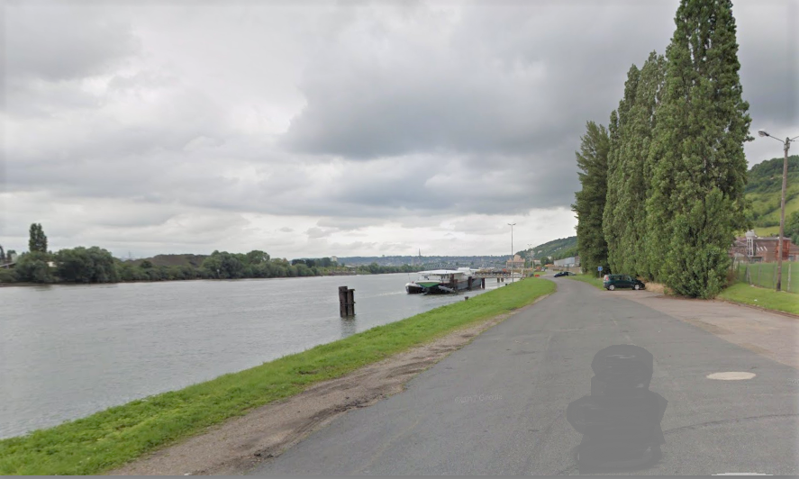 Quai Lescure à Amfreville-la-Mi-Voie : c'est lea seconde fois en une semaine que la péniche Isabelle est la proie des flammes - Illustration © Google Maps