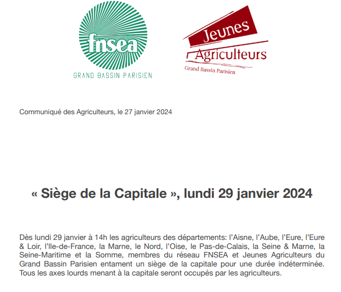 🔴 Manifestions des agriculteurs dans les #Yvelines le lundi 29 janvier dès 14h