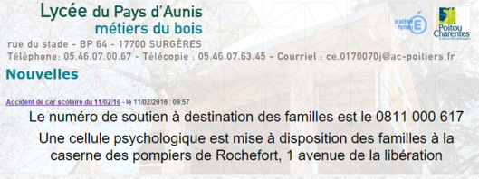 Terrible drame ce jeudi matin à Rochefort, en Charente-Maritime : six adolescents, élèves du lycée professionnel du Pays d'Aunis, à Surgères, ont trouvé la mort dans un accident de la circulation. Les victimes se trouvaient à bord d'un bus scolaire au moment du drame.
