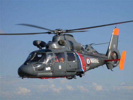 L'hélicoptère Dauphin de la Marine a hélitreuillé à son bord le plaisancier tombé à la mer (Illustration @Marine)