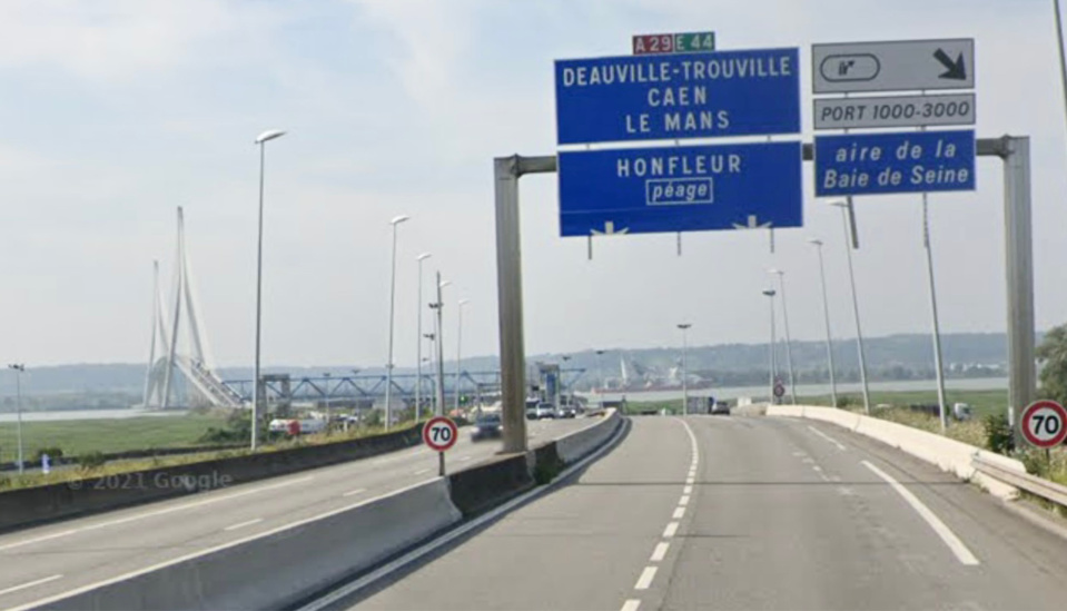 Le pont de Normandie qui relie Le Havre et Honfleur a été rouvert ce lundi matin - Illustration @ Google maps