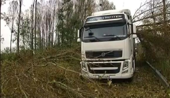 Une soixantaine d'arbres se sont couchés sur l'A131 dans le secteur du pont de Tancarville (Photo capture d'écran France TV info)