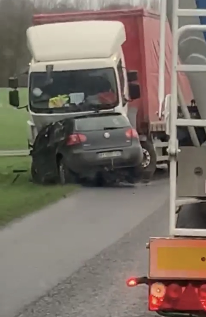 La voiture se serait déportée sur la gauche à la sortie d'un virage au moment où survenait un camion - Photo © A.O pour infoNormandie