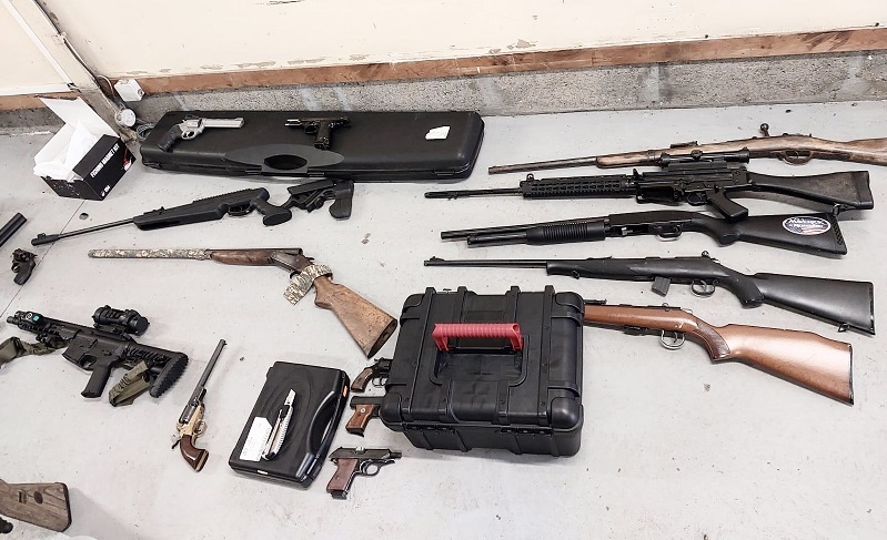 47 armes de différentes catégories, dont certaines équipées de lunettes de visée ont été découvertes lors de la perquisition - Photo Douane française