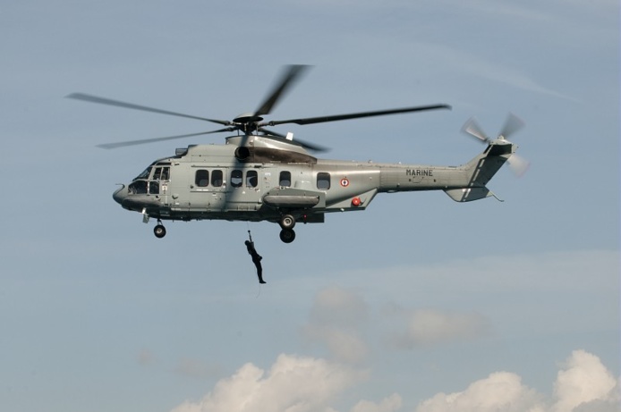 Les trois personnes ont été helitreuillés à bord de l'hélicoptère de service public (Photo Jérôme Hary/Marine nationale)