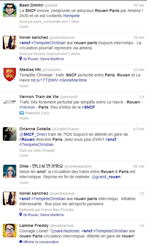 Les commentaires d'usagers sur Twitter