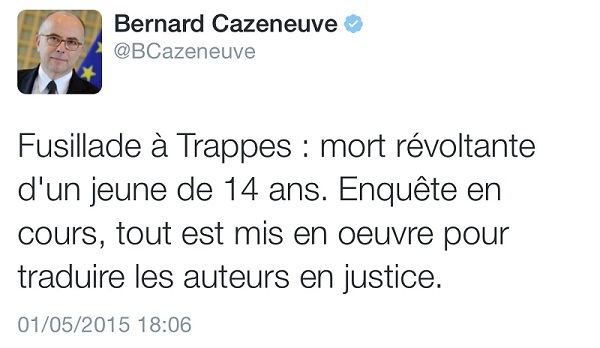 Bernard Cazeneuve : "une mort révoltante"Bernard Cazeneuve, ministre de l'Intérieur, a réagi sur son compte Twitter :