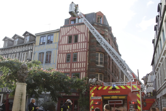 SEINE-MARITIME. La quarantaine de pompiers mobilisés depuis 14h50 est venue à bout de l'incendie qui a totalement ravagé un appartement (et endommagé les combles au-dessus) situé 19, place Saint-Amand, en centre-ville de Rouen à deux pas de la rue de la République.
