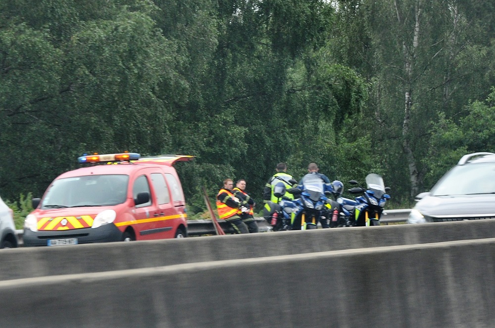 Les gendarmes des pelotons motorisés de Gaillon et de Bourg-Acharg, en charge de l'A13, ont procédé à la sécurisation des lieux durant l'intervention des secours - Photo © infoNormandie