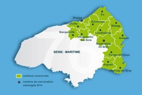 Les cantons les plus touchés par la méningite en Seine-Maritime et où la vaccination est fortement conseillée