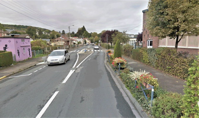 Le bus circulait route de Lyons, la rue principale et commerçants de Saint-Léger-du-Bourg-Denis, quand son chauffeur a été victime d'un malaise cardiaque. Le chauffeur n'a pu être ranimé - Illustration © Google Maps