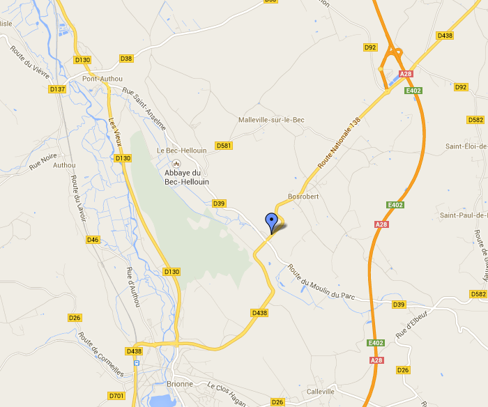 Une déviation est mise en place actuellement par la D438/A28 à Saint-Eloi-de-Fourques et la D438/D46 à Brionne (voir le plan).