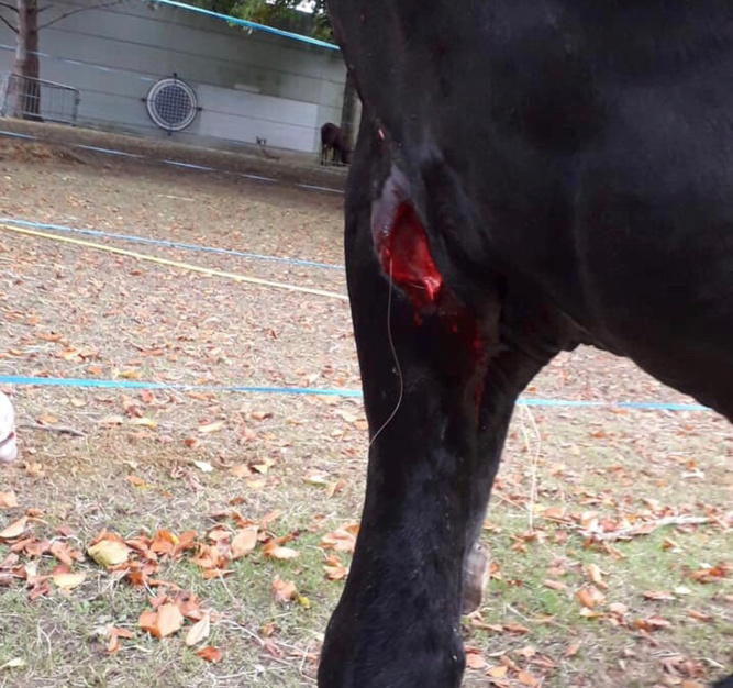 Le poitrail du cheval a été entaillé a l'aide d'une arme blanche : photo publiée sur la page Facebook du cirque Seneca qui a déposé plainte