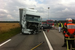 Le choc a été d'une extrême violence, selon un officier de la gendarmerie qui s'est rendu sur place. Les pompiers ont eu beaucoup de difficultés à extraire le corps de l'octogénaire (il était seul à bord) incarcéré dans l'habitacle broyé de son véhicule. Le conducteur du camion est indemne mais il a été fortement choqué.