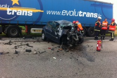 La collision s'est produite ce jeudi 7 juillet vers 16 h 30, sur la D613 (ex-RN13) qui relie Evreux et Lisieux, dans une ligne droite. Dans des circonstances qui restent à établir, la Mégane s'est déportée sur la gauche et a percuté violemment l'avant gauche du semi-remorque qui arrivait en sens inverse (il circulait en direction d'Evreux).