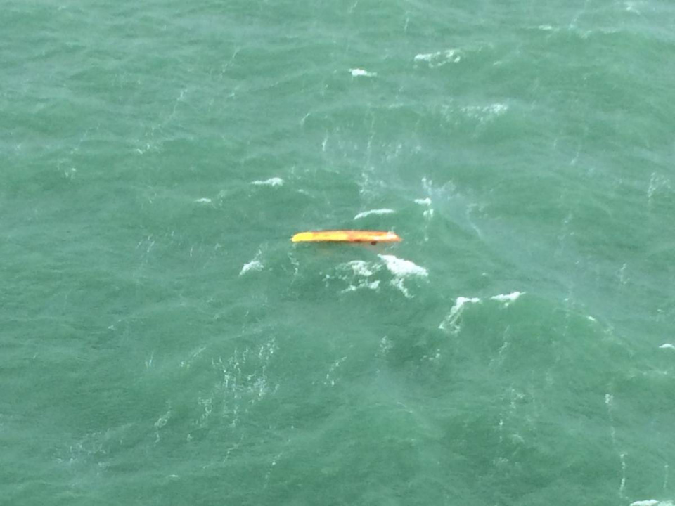 Le kayakiste en grande difficulté a été localisé par l'équipage de l'hélicoptère de la Marine nationale au large des Petites Dalles - Photo © Marine nationale