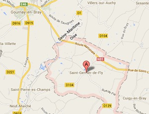 Saint-Germer-de-Fly (Oise) est situé à moins de dix kilomètres de Gournay-en-Bray, en Seine-Maritime.