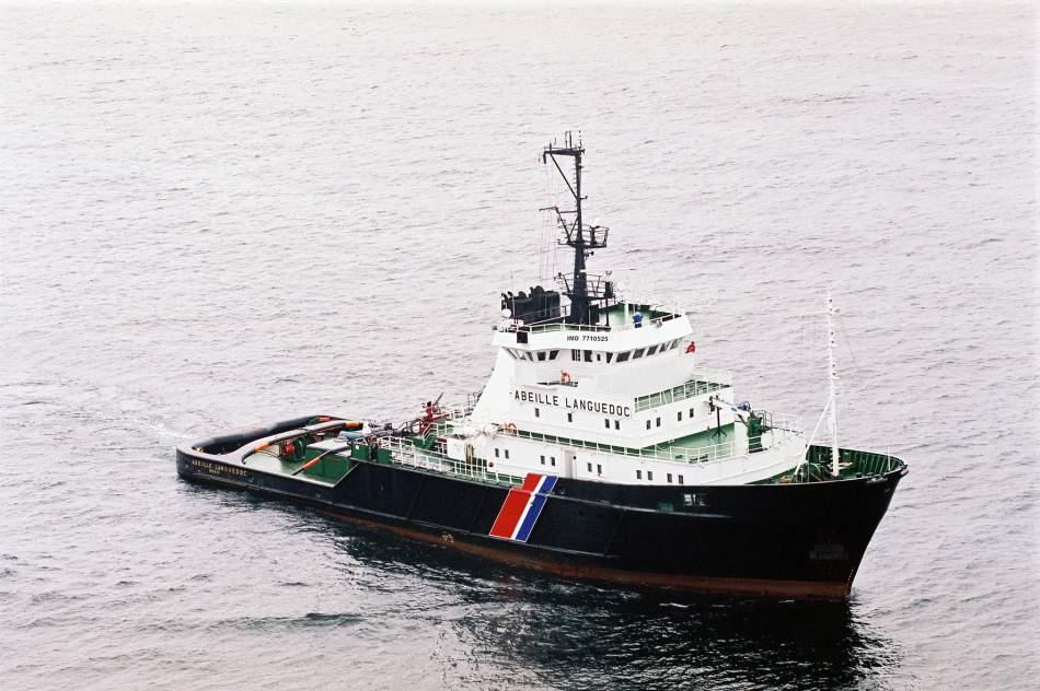 L'Abeille Languedoc a été dépêchée sur zone par la préfecture maritime afin de remorquer la barge citerne à la dérive, jusqu'au port de Dunkerque