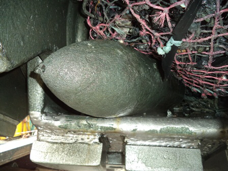 La bombe allemande de 50 kg remontée à la surface va être détruite par les plongeurs-démineurs de la Marine (Photo@PREMAR)