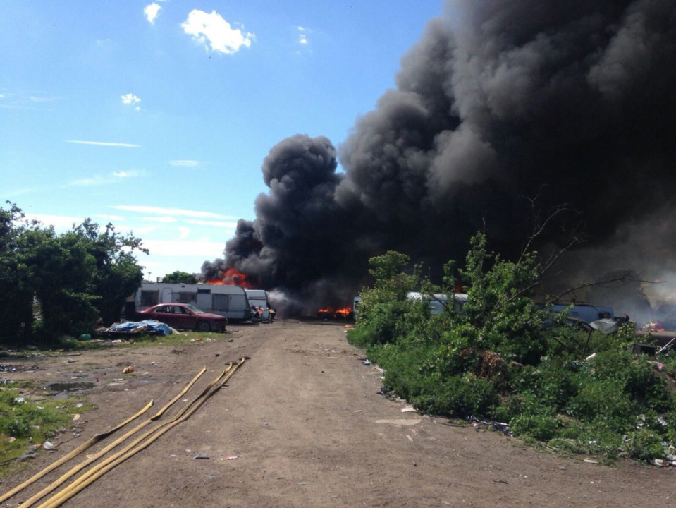 Un violent incendie d’origine criminelle s’est déclaré dans un camp regroupant une centaine de roms, sur un terrain situé rue du Chemin Vert à Triel-sur-Seine (Yvelines).