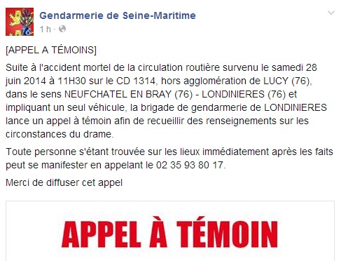 Une enquête est en cours à la gendarmerie de Londinières qui a lancé un appel à témoin sur la page Facebook de la gendarmerie de Seine-Maritime (lire ci-dessus)