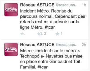 Le réseau Astuce de la TCAR a signalé l'accident à ses abonnés sur Twitter