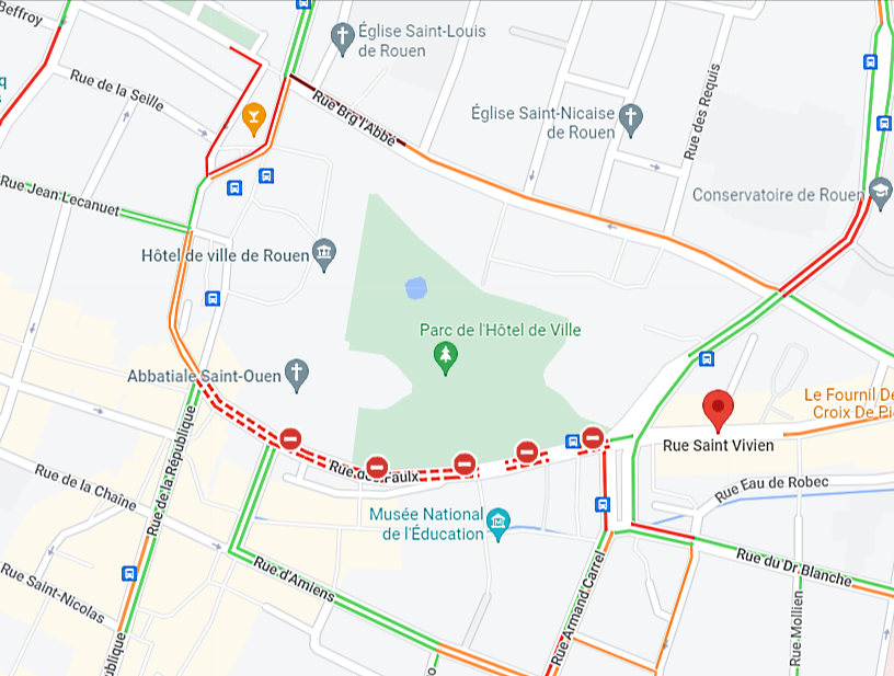 La rue Saint-Vivien a été fermée entre la place du Général-de-Gaulle (Hôtel de ville) et la place Saint-Vivien