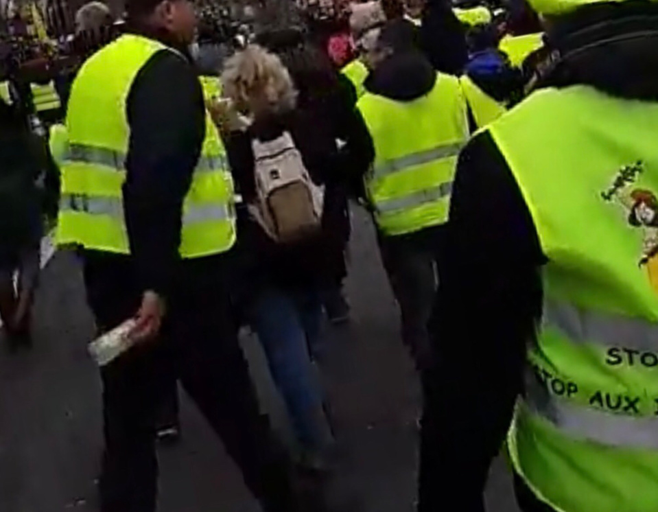 Un policier à scooter a été blessé par un jet de projectile. Il a chuté au sol et a été traîné par des gilets jaunes, indique une source policière. Le fonctionnaire a été conduit pour soins à l'hôpital.
