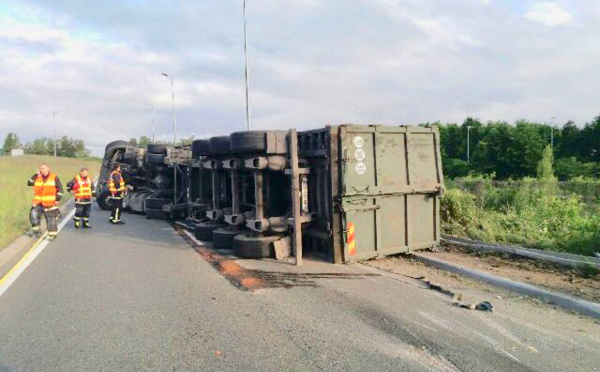 Le semi-remorque s'est renversé aux abords du rond-point formé par les Départementales 30 et 113, près du centre de secours et d'incendie de Poissy. La circulation a été coupée sur la D113 toute la...