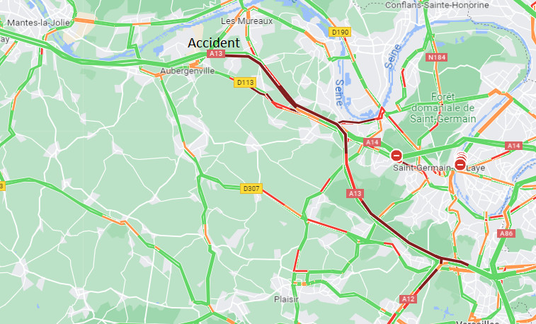 La circulation a été fortement perturbée sur l'A13, dans les deux sens entre Poissy et Flins-sur-Seine, notamment. Elle a dû être coupée afin de permettre à l'hélicoptère de se poser au plus près de l'accident.