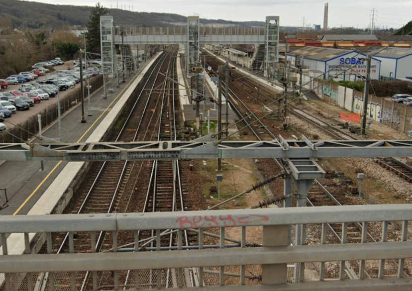 Le véhicule a endommagé en la percutant la balustrade de sécurité du pont enjambant les voies ferrées - Illustration © Google Maps