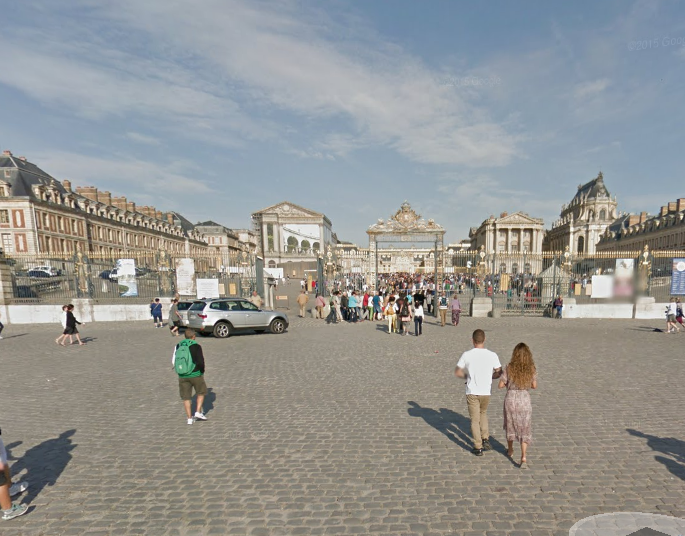 L'homme dépressif s'en est pris aux militaires en faction sur la place d'Armes à l'entrée du Château de Versailles (Illustration@Google maps)