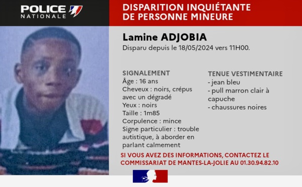 Yvelines. Disparition inquiétante : la police lance un appel à témoin pour retrouver Lamine, 16 ans - 19 Mai 2024