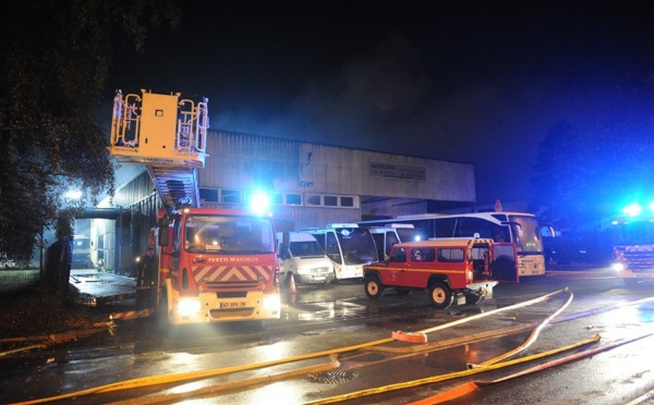 Yvelines : le garage d'une société d'autocars dévasté par un violent incendie hier soir, près de Versailles - 21 Octobre 2014