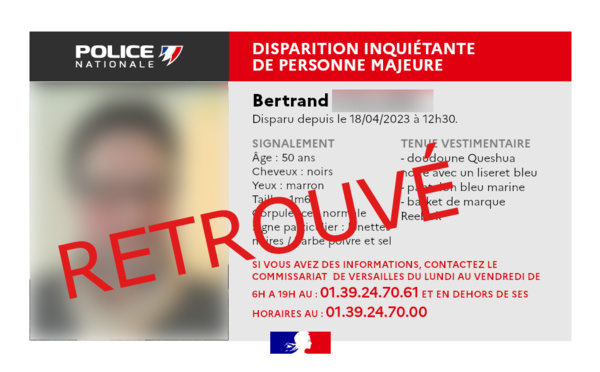 Cet homme âgé de 50 ans n'avait pas donné de ses nouvelles depuis mardi midi. Le commissariat de Versailles avait alors publié un appel à témoins pour disparition inquiétante