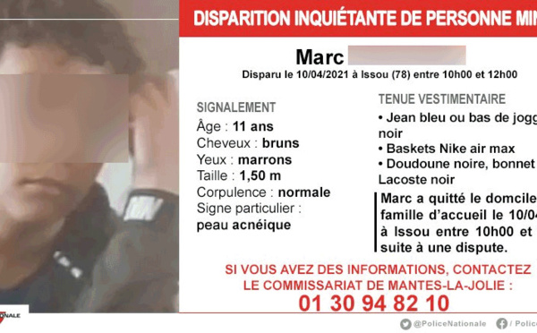 Disparition inquiétante dans les Yvelines : Marc, 11 ans, a été retrouvé sain et sauf à Paris - 12 Avril 2021